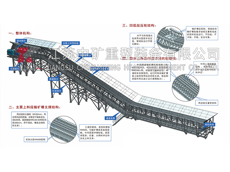 5. Chain rollers, intermediate supporting rollers and rails effectively strengthen the support chain plate, more powerful resistance to the impact of materials and running resistance, the equipment can withstand the transportation of large heavy materials, the supporting roller is evenly stressed, and the service life is long.