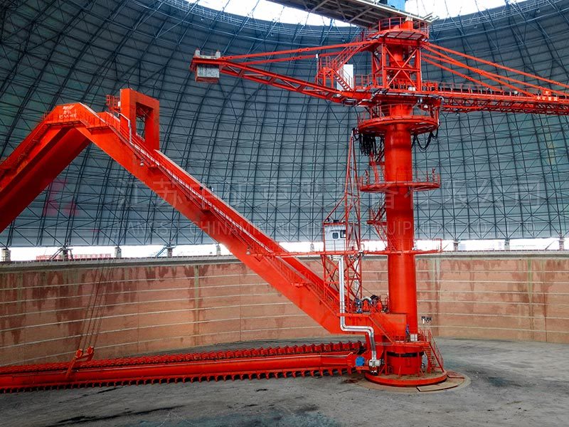 Circular stacker-reclaimer includes split arm circular stacker-reclaimer, portal circular stacker-reclaimer, bridge bucket wheel circular stacker-reclaimer, bridge scraper circular staker-reclaimer.It mainly consists of: stacking steel structure, stacking belt conveyor, stacking rotation mechanism, central column, central funnel, cantilever steel structure, reclaiming rotation, reclaiming walking mechanism, reclaiming pitch mechanism, scraper reclaimer, auxiliary structure, electrical driver's cab, electrical system, hydraulic system, lubrication device and dust removal system.