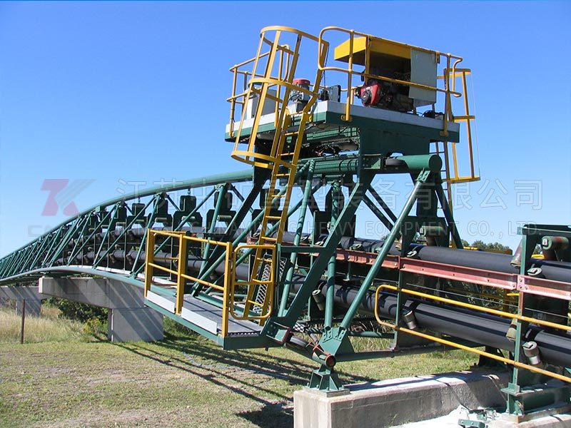 The return belt of the pipe belt conveyor is also in the shape of a circular tube. The conveyor belt is rolled up, and the overlapping part is located at the bottom of the circular tube. This not only allows the conveyor belt to pass through the same bending route as the bearing side, but also makes the dirty side of the conveyor belt wrapped, reducing the possibility of material dripping or scattering.