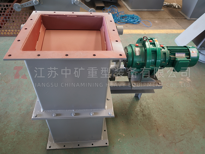 The transmission rod is driven by the reducer to rotate the upper and lower transmission shafts through a crank, cam and connecting rod, which are opened interactively. The equipped lever system or tension spring ensures the reliable reset of the valve plate, prevents wild wind from blowing in, and completes the system's feeding and unloading according to the determined opening and closing frequency.