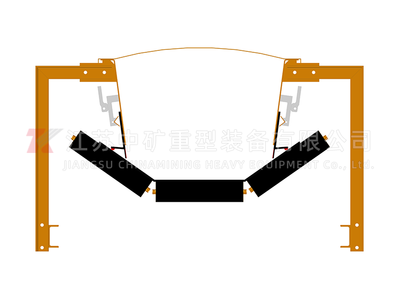 3. Use troughing idler and retainer plate structure at the bottom end of the transfer chute, arranged with rectangular UHMWPF wear-resistant liners, and the combination of rolling friction and sliding friction affectively improves the service life of the retainer plate. The retainer plate and the rubber skit board sandwich the belt in the middle, which effectively prevents the belt from "wave shape" during loading, improves the sealing level and ensures the sealing effect. The retainer plate supporting legs are connected by hinges, which can be moved backwards and convenient for maintenance and replacement: