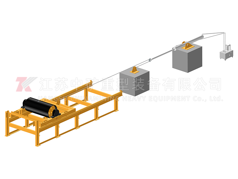 It can be connected to the centralized control device to achieve remote control of the tensioning device. The general layout of this device is shown in the figure. It consists of five main parts: hydraulic pump station, tensioning cylinder, energy storage station, electric control box and accessories. The tensioning cylinder is connected to the tensioning trolley through pulleys and wire ropes. According to the different installation methods of pulleys and winding methods of wire ropes, there are seven installation methods. Users can choose according to the maximum tension, tension adjustment range and tension stroke of the tensioning trolley as well as the actual situation of the matching belt conveyor. It is required that the placement location does not drop coal, mineral powder, water and so on.